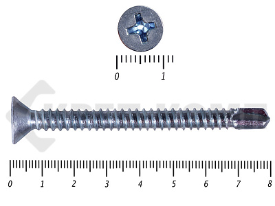 Оцинкованные потайные саморезы со сверлом DIN 7504 P – имеют полную резьбу и сверло на кончике. Потайная головка при вкручивании входит в материал и не выступает на поверхности. Такими саморезами можно закрепить листовые отделочные материалы из пластика, металла, фанеры к металлическим конструкциям. Саморез может высверливать отверстие в углеродистой стали толщиной до 4мм.