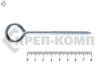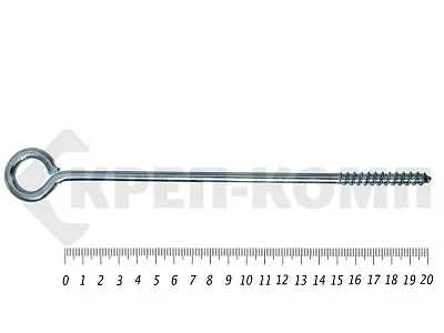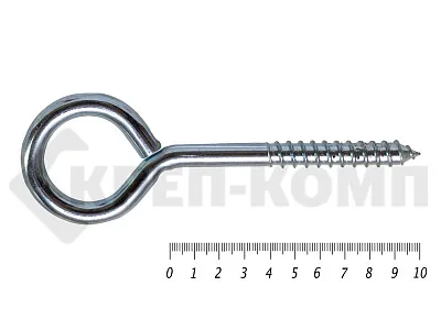 Шуруп с кольцом на конце используется при возведении строительных лесов, формировании кабельных линий, фиксации декоративных деталей.
