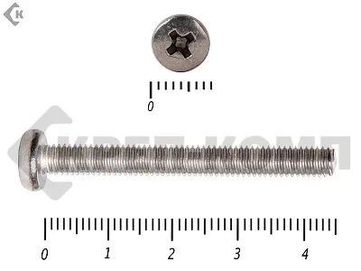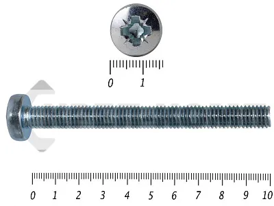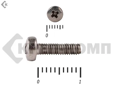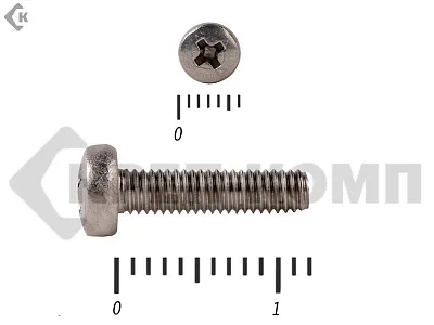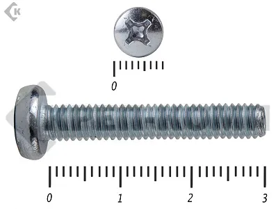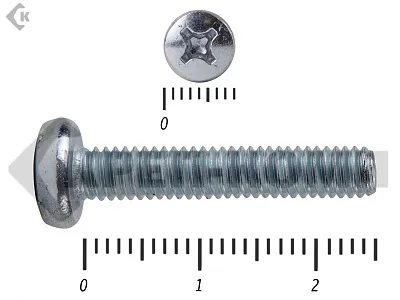 Винт с полукруглой головкой - это стальной стержень с полной метрической резьбой. Существует два варианта исполнения - с прямым шлицем и с крестообразным. Полукруглая головка обеспечивает лёгкий захват простой отверткой.