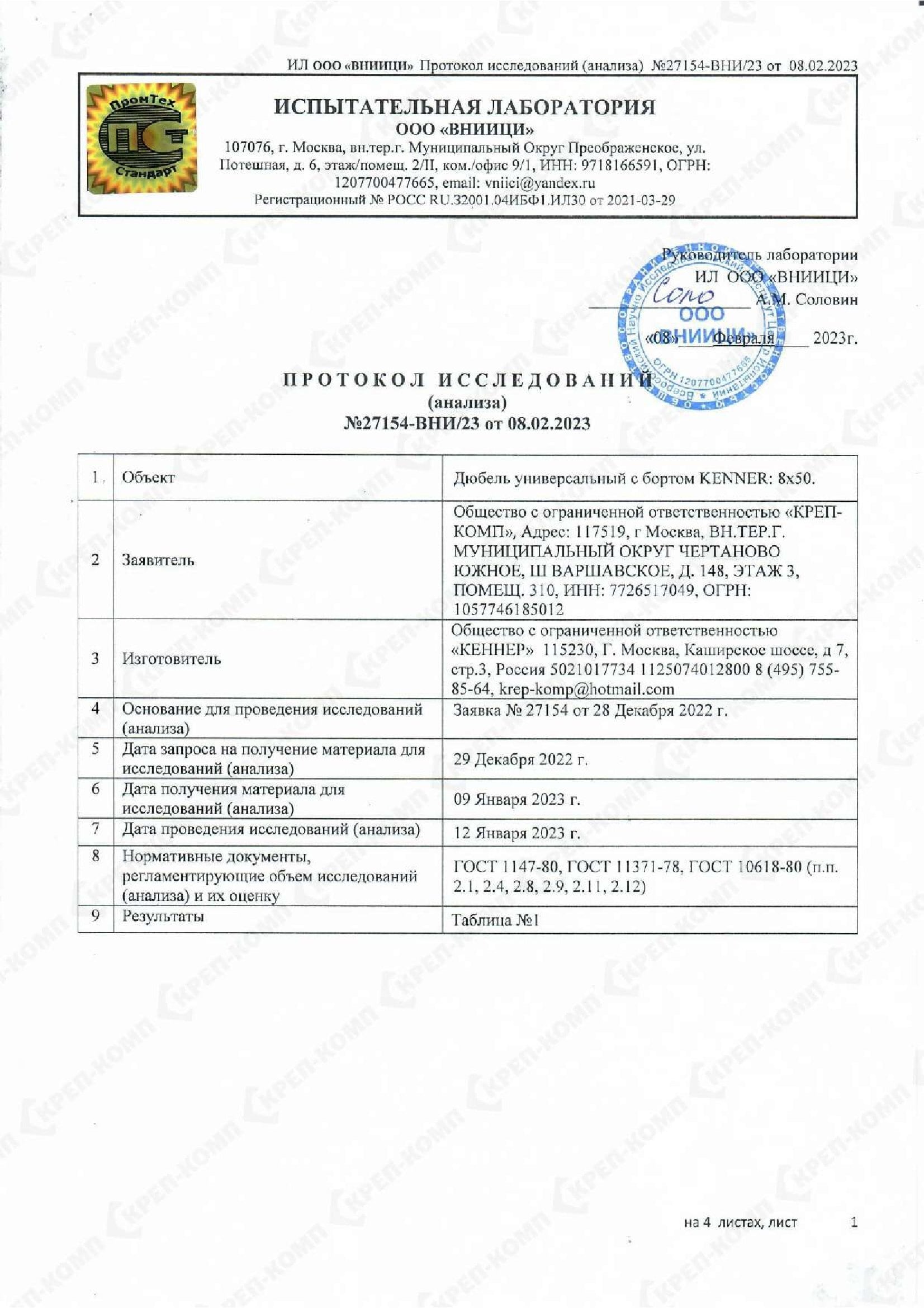 Скачать Дюбель универсальный с бортом KENNER 8х50