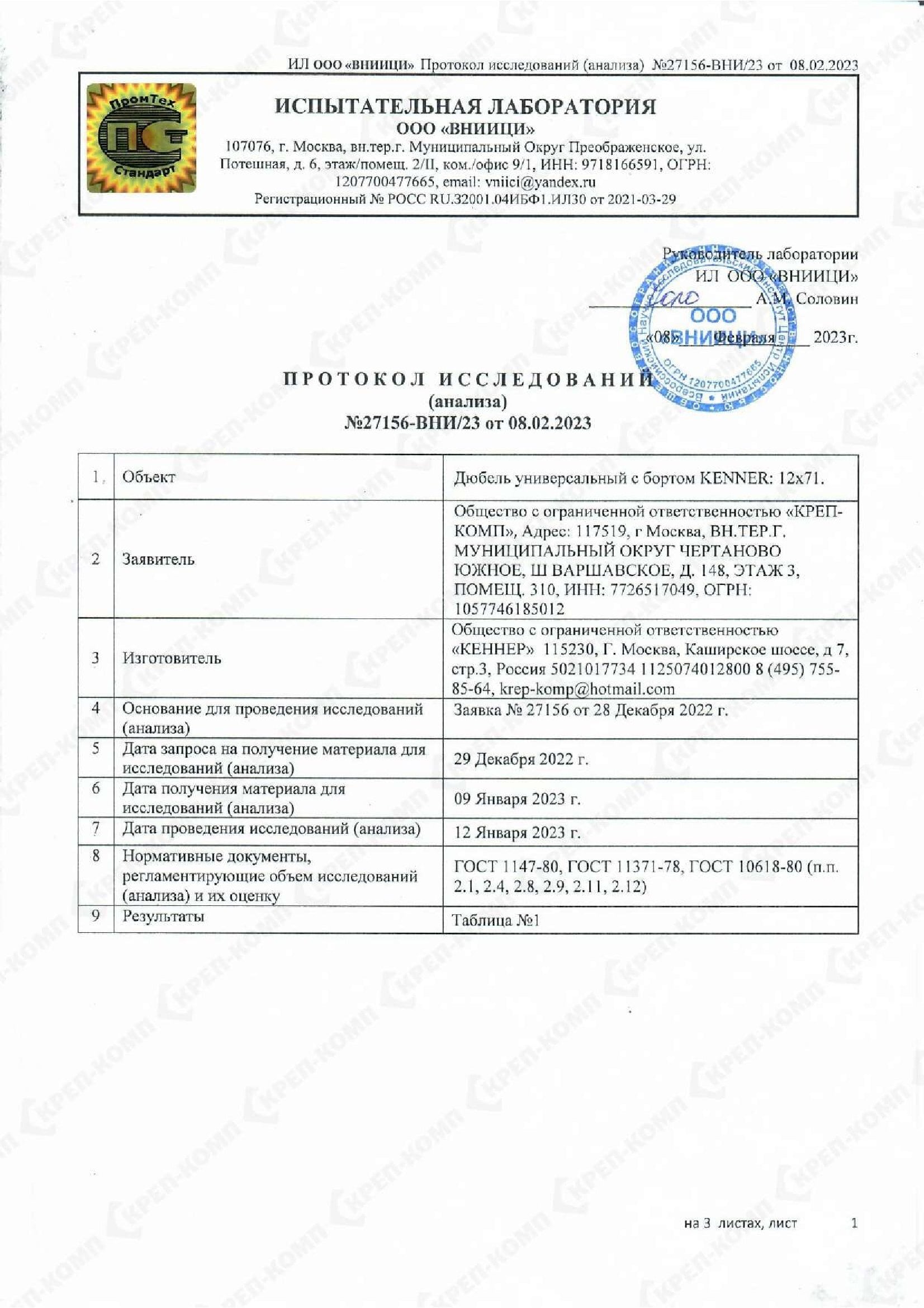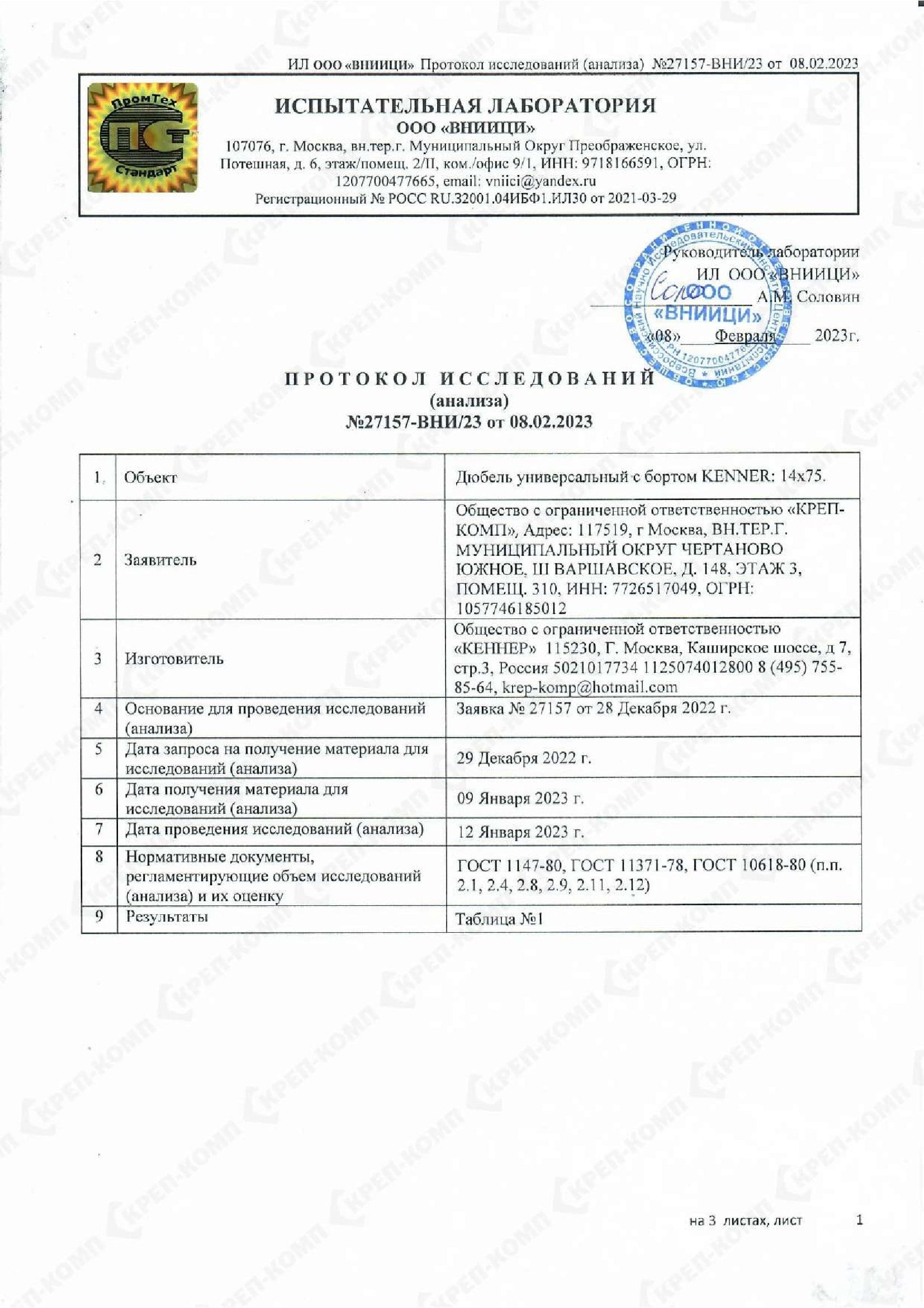 Скачать Дюбель универсальный с бортом KENNER 12х71